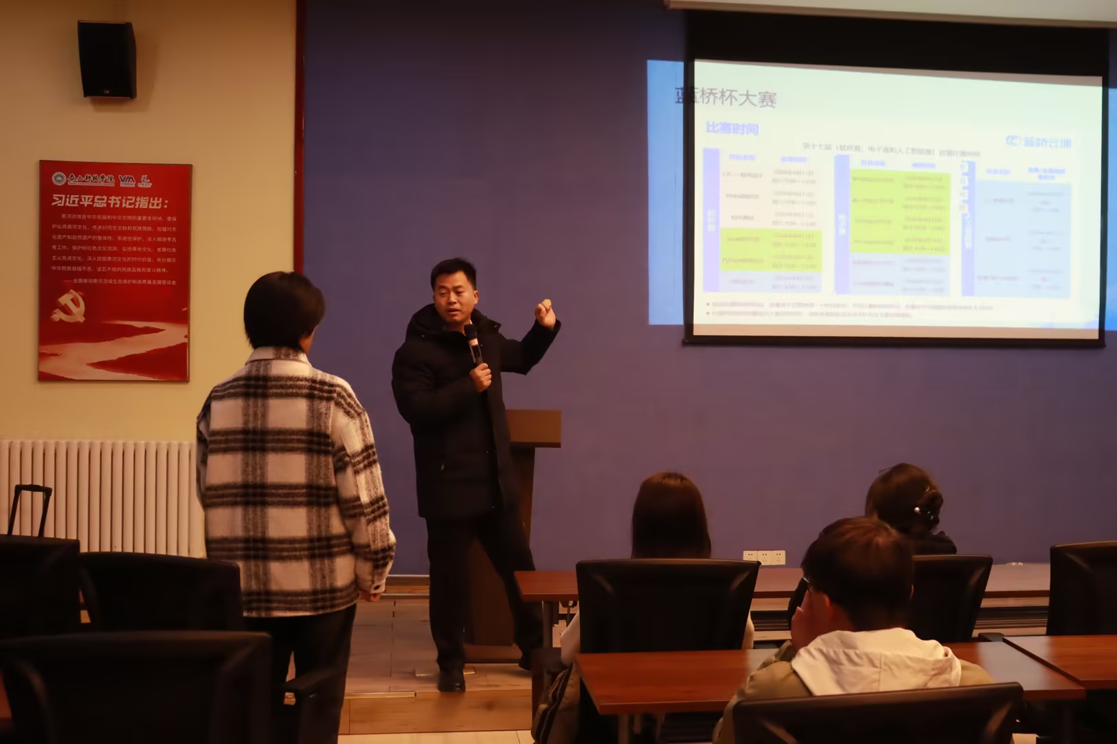 学科竞赛是大学生活的重要组成部分,对提升升学竞争力和增强未来就业能力具有重要作用。为使广大同学深入了解学科竞赛、充实校园生活,通信工程学院团总支学生会学习部于12月10日在九河书院110室组织开展了以“逐梦蓝桥电子场,赋能青春成长路”为主题的学风建设活动。