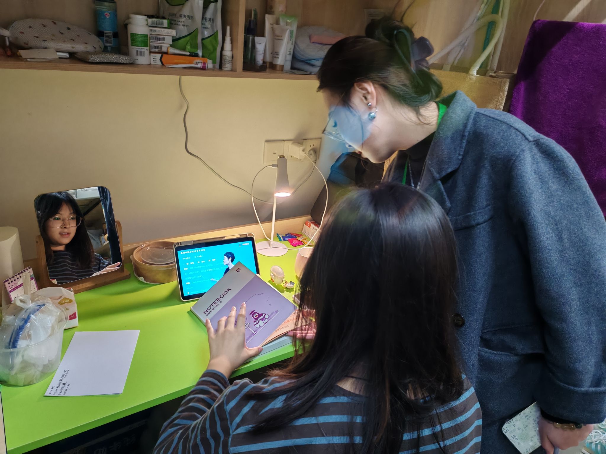 走访中,老师们还特别关注新生的心理状态,通过“一对一”轻声交流,分享自身求学经历与调适方法,给予情感支持与心理疏导,让新生感受到“亦师亦友”的温暖。一句“没想到老师会记得我上次在班会提过的困惑,还特意来宿舍跟我聊,感觉心里踏实多了!”道出了同学们最真挚的心声。