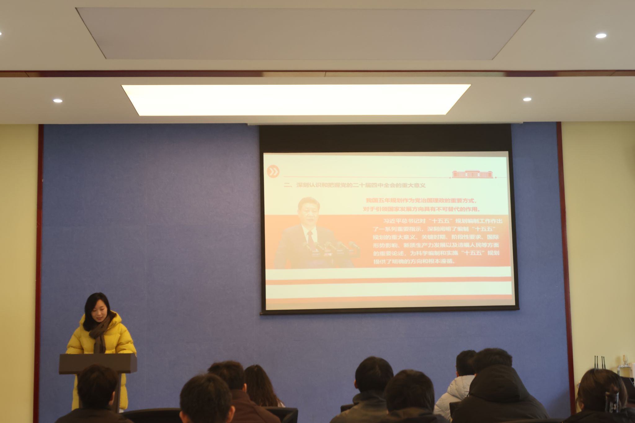 为深入学习贯彻党的二十届四中全会精神,引导新时代青年深刻把握国家发展战略蓝图,12月19日,通信工程学院于九河书院党团活动室举办党的二十届四中全会精神专题宣讲会。泰山科技学院学习贯彻党的二十届四中全会精神青年师生宣讲团成员、马克思主义学院教师赵建惠面向我院师生代表进行宣讲。