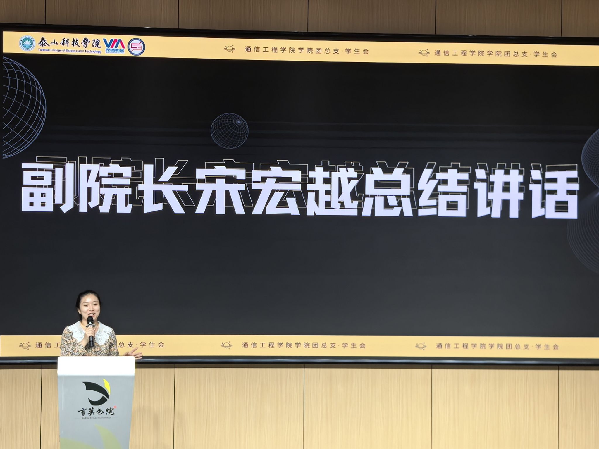 通信工程学院副院长宋宏越老师进行总结,她首先表达了来到通信工程学院大家庭之后的喜悦心情,期待与学工团队和同学们一起为通信的发展共同努力。随后为新学期提出三点工作建议:第一,通信工程学院团总支·学生会干部作为全院学生的标杆,要做好思想引领,以实际行动引领优良风气,通过良好的言行举止展现个人素养;第二,志愿服务是连接校园与社会的纽带,也是传递温暖、践行责任的重要途径。新学期,我们将从校内需求响应和校外资源联动两个维度发力,系统化推进志愿服务工作;第三,诚挚欢迎大家随时前往办公室分享个人的奇思妙想,为学院发展“出谋划策”,大家尽可畅所欲言,让思维相互碰撞,共同探寻更多的可能性。