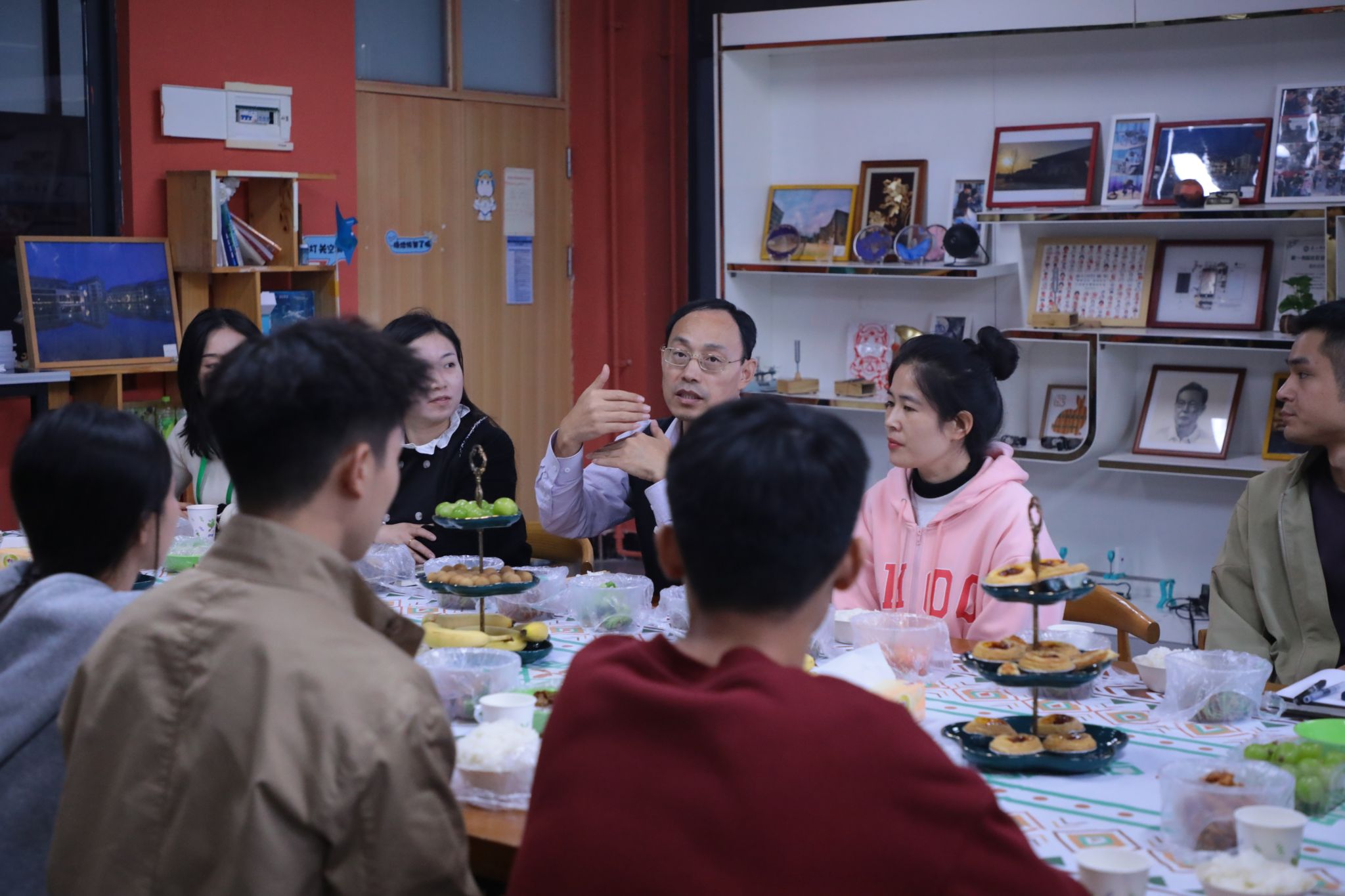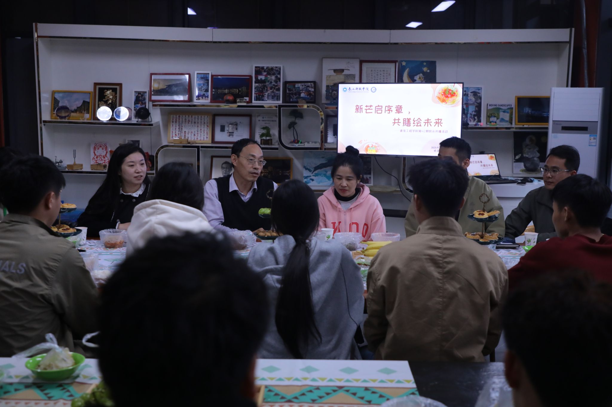 2025年10月17日,瞻岩114造物空间活动室内“新”彩飞扬,暖意融融,一场以“新芒启序章,共膳绘未来”为主题的院长共膳活动在此温馨上演。学院院长程艳辉、副院长宋宏越及各位老师与2025级新生代表们围桌而坐,在美食与恳谈的交融中,共同解读学校特色育人模式内涵,为学子们的成长蓝图描绘崭新篇章。