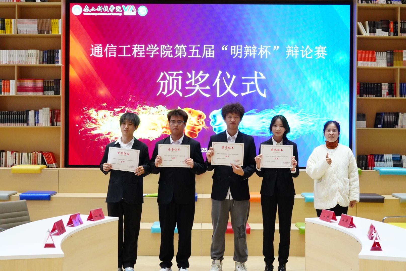 在多轮思维交锋落幕后,经评委综合评议与公正裁决,“蛋仔派队”凭借全程稳定的逻辑输出与高度协作的团队表现,成功摘得本届“明辩杯”新生辩论赛桂冠。至此,这场始于十月、历经多轮激辩的思想盛宴,在掌声与思考中圆满收官。