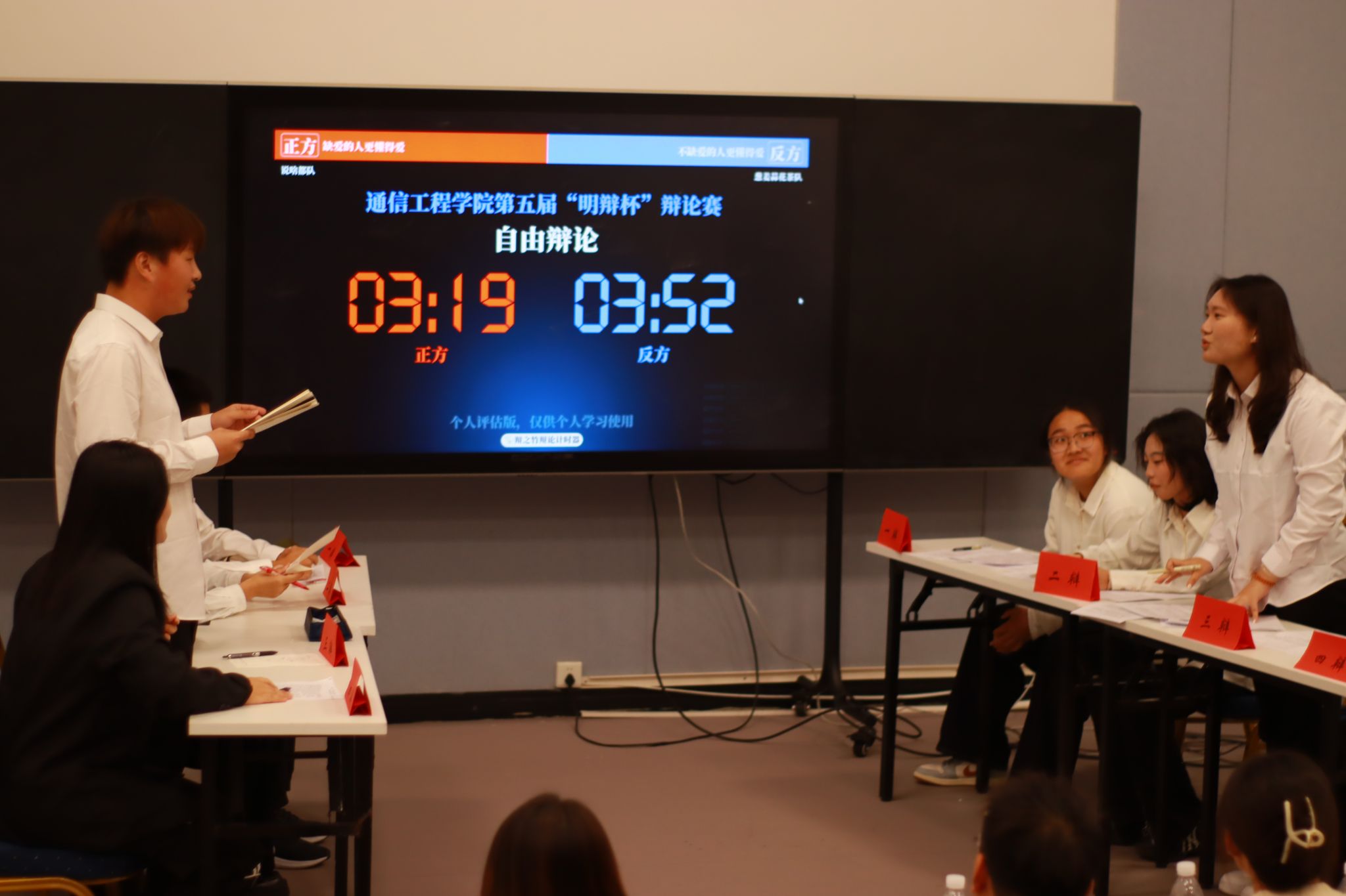 经过多日的激烈角逐,10月20日,第五届“明辩杯”新生辩论赛终极对决在敢当书院201正式拉开帷幕。现场观众热情满满,共同见证这场思维与口才的巅峰对决。