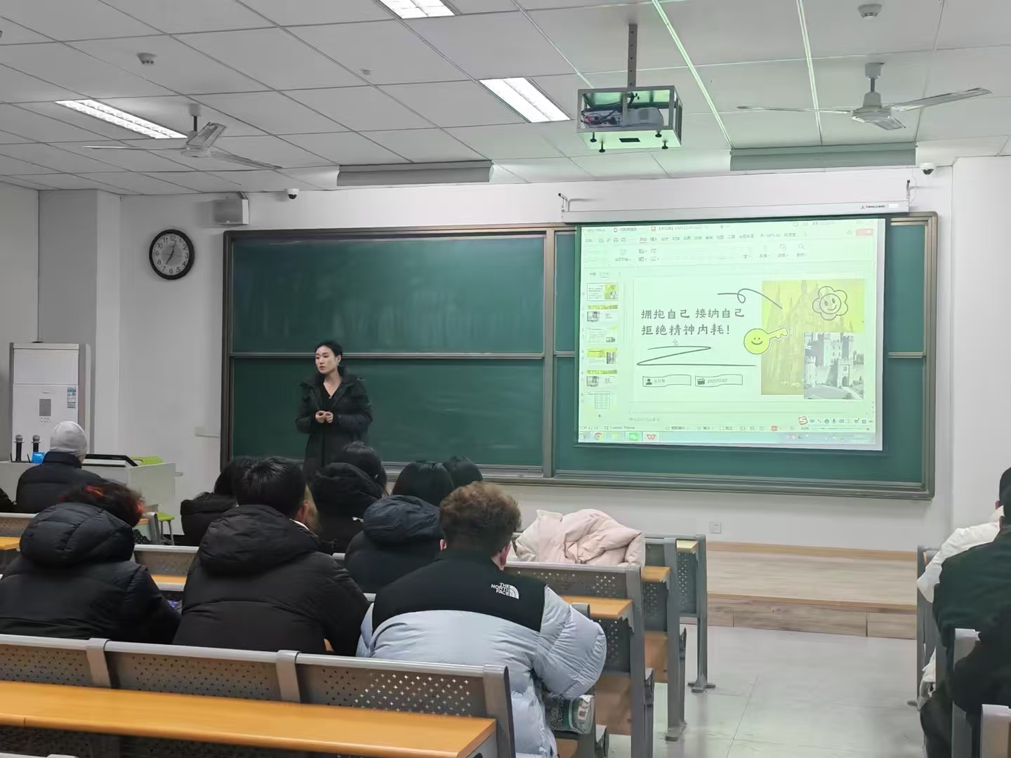 12月7日,辅导员刘安娜老师于J1-501举办了以“给心灵减负”为主题的心理健康教育班会。班会上,辅导员聚焦大学生常见的心理困扰,详细讲解了“焦虑倾向”、“心理不平衡”及“情绪不稳定”的典型表现与识别信号,引导学生科学认识自身状态,破除对心理问题的误解与羞耻感。随后,班会重点转向积极应对与成长。刘老师分享了多种增进心理健康的实用途径,包括情绪管理技巧、压力放松方法、积极思维培养以及如何有效利用校内外心理支持资源。同学们在互动中学习了即时平复情绪的方法,并明确了遇到困扰时的求助渠道。